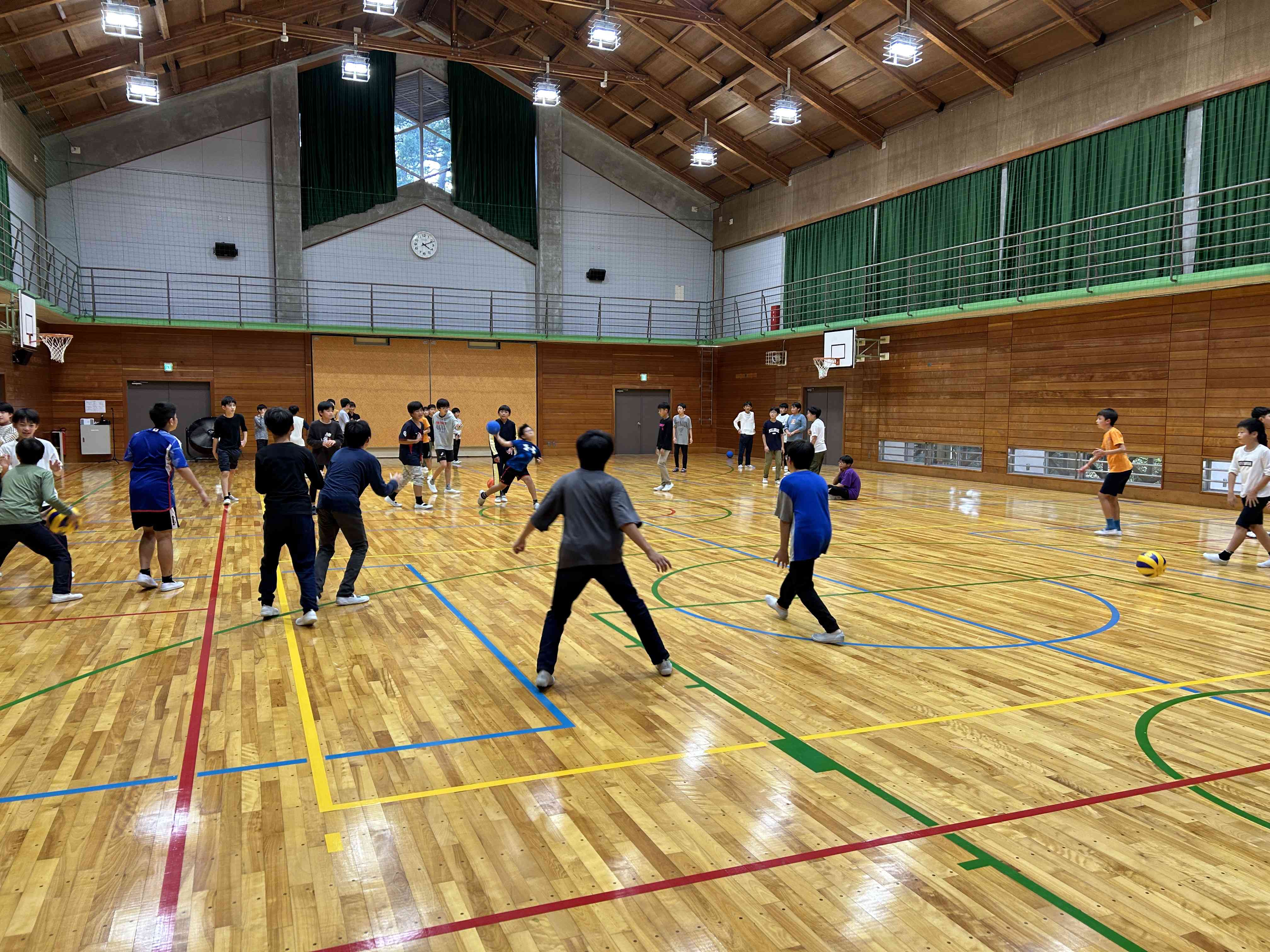 16時 アリーナ(体育館)ボール運動 ドッジ&バレー&バスケを20分交代でやっていました。 元気が有り余っています。