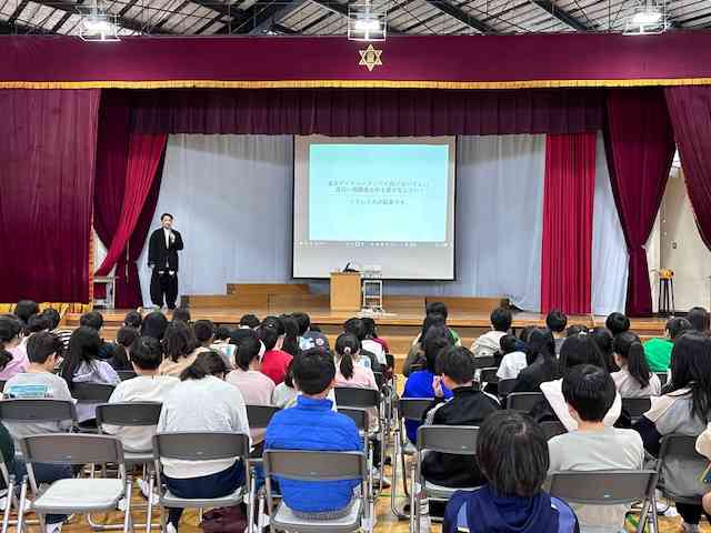 今回は、11/22(金)に行われた、5年生への起業家講演会の様子を紹介します。 本校の校内研究とも関連させた取組です。10月の道徳授業地区公開講座のときにも、道徳の授業と関連させて、同じように起業家の方をお招きして、5・6年生と保護者を対象に「チャレンジすることの大切さ」のようなことを、お話しいただきました。 今回は、5年生だけです。なんとグッドタイミングで、この前日、5年生総合的な学習の時間の「お米」の次の単元である、「会社を作ろう!」の授業に入っていて、まさに、23もの会社を作っているときでした。 そこで、当日は、株式会社ストーリー&カンパニー代表取締役 細川拓様をお招きして、お話を聞きました。「宝物に出会うための旅」と題して、楽しく面白い、ためになる話をたくさんしていただきました。起業とは、遊園地で遊びたいなぁと思ったとき、「いまあるディズニーランドに行くのではなく、ディズニーランドみたいな、ディズニーランドよりも楽しい遊園地を自分でつくろうと考えるみたいなこと。そのために必要なのはなんだろう?」細川さんはたくさんの経験をしてきました。もちろん、失敗もたくさんしました。「いろんな経験をして分かったことは、ルフィのような旅に出なくても、自分のまわりにはたくさんの宝物にあふれているということ」。また、社名のネーミングにも関係している、会社HPの最初に出てくる「はじめに物語あり」。人それぞれ、会社の一つ一つに物語がある。その物語を膨らませる、その物語を豊かにするお手伝いをしたいなと思って今の会社を立ち上げた。などなど、素敵な話をたくさん聞かせていただきました。 会社を作って、これからどうしようと考えているこどもたちにぴったりな話でした。最後の質疑応答でも、5年生からの質問は具体的で実践的なものでした。 お忙しい中、ご来校いただき、楽しい話を聞かせていただいた細川様、スタッフの方、角川アスキーの方、本当にありがとうございました。 別件です。本HPでも、先日、江東ケーブルテレビ「きらきら1年生撮影」の様子を紹介しました。その放映日が決定しました。明後日、12/8(日)から14日(土)チャンネルベイ10では9時から9時45分、チャンネルベイ11では18時から18時45分、22時から22時45分に毎日放送されます。どちらも、区内大島南央小学校とセットでの放送です。どうぞお楽しみにしていてくさい。 さまざまな感染症が徐々に広がりつつあります。体調管理等気を付けてよい週末をお過ごしください。【添付ファイル】