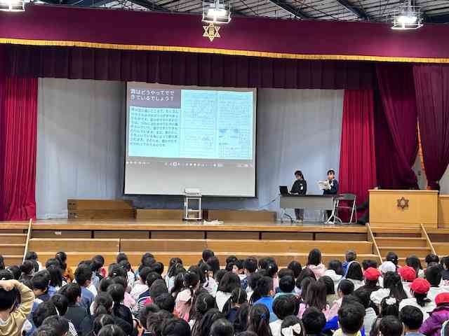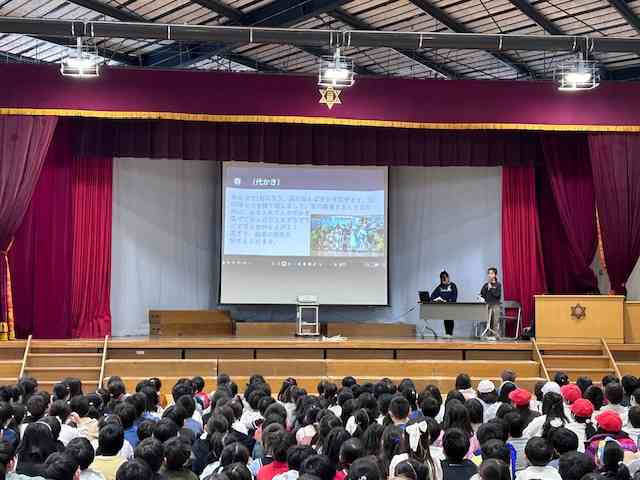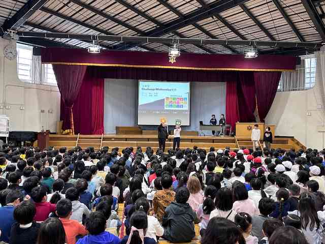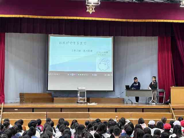 新年のChallengeWednesday発表集会はいよいよ下学年が登場します。 もちろん最初は3年生。先週1月21日(火)の第11回ChallengeWednesday発表集会の様子を紹介します。 6年生の挨拶から始まりました。 続いて、SDGs委員会の司会。今回は、2「飢餓を0に」と、13「気候変動」に関係することだという説明がありました。毎回、発表内容の仕分け、いつもありがとう。 「お米が出来るまで」 江東区の「お米の学校」に参加したときの体験記を発表してくれました。なんと、ほとんどの工程を体験して、気付いたことや感想などを写真とともに上手にまとめて、プレゼンできていました。 「雲の観察」 毎日雲を観察して、ChallengeWednesdayの水曜日にまとめているそうです。雲の種類や様子、気付いたことなどの観察記をノートにびっしりときれいにまとめて、そのノートを提示すると思わず歓声が。 3年生の発表。最初のスライド画面から。SDGsの図表が提示されていました。学年で意識して取り組んでいるのでしょうか。発表の仕方やプレゼンを2人で交代で操作するなど息もぴったり。素晴らしい!さすがだと感じました。 2つの発表内容の共通点。この調べ活動が後の学年の学習でも確実に生きてくると言うこと。5年生は本校の学校田でお米を栽培しています。体験活動が生きてきそうです。また、5年生理科で天気と雲の観察の学習をします。そのときに、ノートが大活躍しそうです。 調べたことがその後の学習にも生かされる。こういうところもChallengeWednesdayのよいところかもしれません。 明日水曜日、ChallengeWednesdayは何を調べますか。 今朝はこのあと、いよいよ低学年の出番!2年生のChallengeWednesday発表集会です。楽しみです。【添付ファイル】
