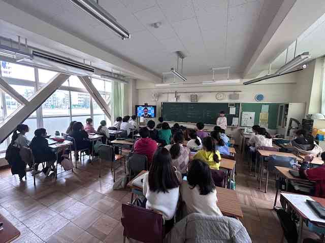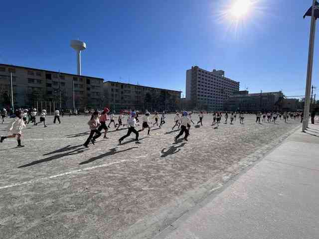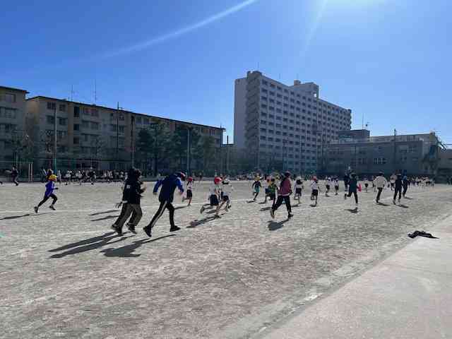最近の様子をトピック的に紹介します。 写真1枚目。今週2/4(火)の午後江東区学びフォーラム、クラスでのオンライン参加の様子です。江東区教育委員会のスローガン、「みんなかがやく!」の実現のため各学校園での、こどもたちの主体的な取組や成果を紹介するものです。本校も、第1回目に「ChallengeWednesday発表集会」の取組を紹介しました。今年も上学年の4・5・6年生がオンラインで視聴参加しました。写真は平久小学校の取組を聴いて本校6年児童が感想を伝えている場面です。各学校園の創意工夫あふれるこどもが主役の取組にこどもたちも先生たちも刺激を受けました。 2枚目から4枚目。現在、全校で取り組んでいるランニング週間の第1週目の様子です。2つの学年が合同で、校庭を約6分間走っています。組み合わせは、写真順に、3・4年生、2・5年生、1・6年生です。下の学年が内側を、上の学年が外側を走ります。回を重ねるごとに、各自のペースランニングができつつあります。機会があれば、上達した走りを第2弾でお知らせします。 最後5枚目は、本校太鼓クラブの練習風景です。明日の学校公開で行われるクラブ発表会に向けて、器楽クラブと隔日で体育館で練習しています。明日の朝の時間帯は児童向けの本番発表会、そして、中休みに保護者向けの本番発表会を行います。是非ご鑑賞ください。 明日は今年度最後の学校公開です。是非ご来校、ご参観ください。ご来校の際は必ず1階受付をお通りくださいますよう重ねてお願い申し上げます。ちなみに申し上げますと、明日までSDGs委員会さんを中心としてユニセフ募金を行っております。よろしければ、ご来校の際にご協力ください。 今週は長丁場ですが、明日が終われば、3連休が待っています。体調管理に気を付け明日も元気に登校してほしいです。【添付ファイル】