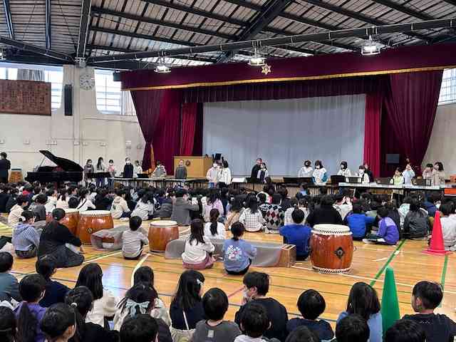 今週は土曜授業参観日特集です。その3回目です。 たくさんの保護者の皆様のご参観ありがとうございました。各学年等の様子を一部ですが紹介します。 今回は高学年とクラブ発表会の様子です。 1枚目。5年生。社会科「情報活用」の学習。学習のまとめ、chromebookで分野ごとにまとめていくそうです。5年生ともさすがに活用してると言いますか、使いこなしているというレベルです。 2枚目。6年生総合的な学習の時間「Thisisマイストーリー」の発表会です。一人一人が自分がなりたい職業や、やってみたい仕事、そのために必要なことやその理由などをプレゼンしていました。 3枚目。6年生理科。水溶液の実験の様子です。気を付けることなどを聞いた後、蒸発皿で水溶液を蒸発させて、どの水溶液かを考える授業でした。写真は前半の諸注意の場面です。 4枚目。クラブ発表会、太鼓クラブの発表です。朝から気持ちよいずしんとした振動がお腹に伝わりました。「三宅太鼓」息もぴったりで練習の成果を発揮できていました。 最後5枚目。クラブ発表会、器楽クラブの発表です。「塔の上のラプンツェルより~輝く未来~」美しいハーモニーでこちらもまた朝から爽やかな気持ちにさせてくれました。 2つのクラブ発表。3年生にはクラブ決めのクラブ見学も兼ねていました。それぞれの部長さんから演奏の最後にお誘いの言葉も伝えられました。1学年上の4年生が高学年に負けずに演奏について行ってる様子しかと目に焼き付けたことでしょう。興味・関心をもった子が必ずいるはずです。ありがとうございました。 このほか、高学年、5年生は3・4時間目に大々的に体育館で総合的な学習の時間「会社をつくろう」の商品プレゼン大会&即席販売会をしていました。保護者の協力もありかなり盛り上がりました。ありがとうございました。これについてはまた、後日紹介します。 土曜授業参観日、たくさんのご参観ありがとうございました。高学年ともなると、おうちの人が来てくれて嬉しいのに無邪気に喜べない自分がいるという感じです。ぜひ、おうちの方から、あれはどうなの?あのときどう思った?などと話しかけみてください。 今日はこれから読み聞かせがあります。楽しみです。 今週は3日間でした。体調管理に注意してよい週末をお過ごしください。【添付ファイル】