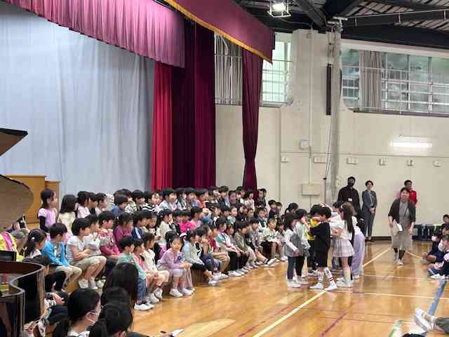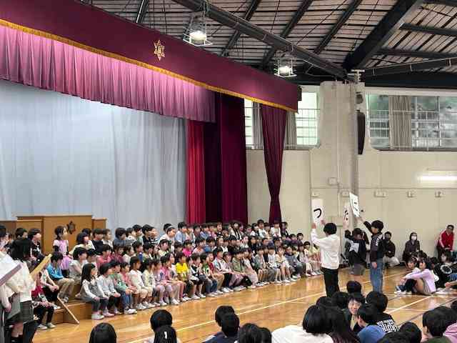 先週末は全体保護者会、クラスでの保護者会、お忙しいところありがとうございました。 同日の朝の時間帯、「1年生を迎える会」が行われました。 今回は、その時の模様を紹介します。 お気付きかと思いますが、年度初めは、1年生関連の発信が多くなります。 今年度も、全校児童が体育館に揃って、1年生をお迎えして、お祝いの会を開くことができました。 昨年同様、これまで通りの通常の「1年生を迎える会」を行うことができています。嬉しいことです。当たり前ではありません。感謝です。 写真1枚目は、1年生の入場!いつもお世話になっている6年生と手をつないでの入場です。すばらしい!花のアーチで全校児童の間を堂々と入場してきました。 写真2枚目はひな壇の1年生の様子と代表委員からの歓迎の言葉。まさに雛壇です。上手に並んでいます。これだけでも嬉しくてわくわくします。代表児童のお迎えの言葉も心がこもったものでした。ありがとう! 3枚目は。3・4年生による歓迎の歌。大きな声で、しかも手拍子つきで歌い上げました。澄んだすばらしい歌声でした!朝から気持ちがよかったです。 4枚目。二辰小のよいところ紹介。「に、た、つ」の頭文字から始まるよいところ。いいですねぇ。 最後5枚目。2年生による歓迎の言葉。素晴らしい言葉でした。そして、1年生へのプレゼント。2年生から朝顔の種のプレゼント。とてもよい光景です。今年も二辰朝顔市も楽しみにしています。 ここで、まだまだ続きがあることが判明しました。明後日また、この続きを紹介します。お楽しみに! 今週もがんばりましょう。【添付ファイル】