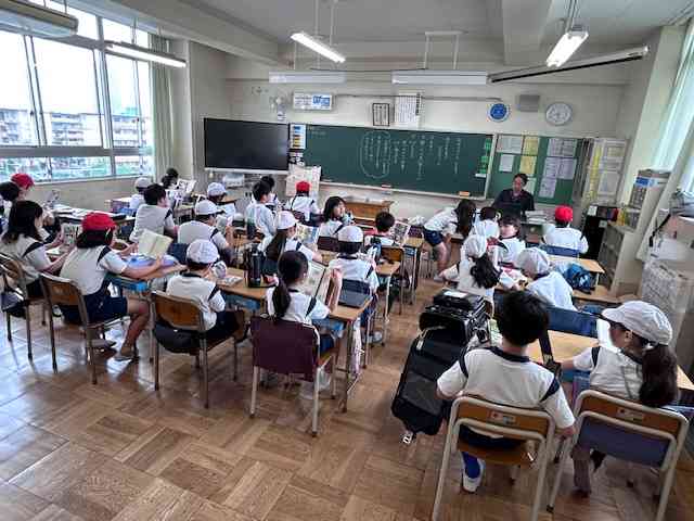 今回は朝の学習タイムの様子を紹介します。今年度から新たに始めたといいますか、時間帯を変更した試みです。これまで、本校では、二辰タイムと称して、5校時が始まる前の15分間、基礎的基本的な学習に取り組む時間としていました。行事や会議などで、B時程になってしまい、なかなか時間の確保が難しいという問題が発生していました。そこで、二辰タイムを月曜日・水曜日・木曜日の朝の時間帯に移動して、しっかりと時間を確保して、ドリルパークや漢字ドリル、習熟プリントなどに取り組む時間としました。ちなみに、火曜日は、全校朝会かChallengeWednesday発表集会です。 木曜日は集会がないときは「GIGAタイム」と称してchromebookについての学習や使い方の確認、情報モラル、新しいソフト等の活用について学びます。第1回目の今回は、「GIGAワークブック」を開いてGIGAタイムの説明など行っていました。 そして、金曜日は、朝の読み聞かせが軌道に乗っているので、引き続き、朝の読み聞かせ&朝読書の時間として残すことになりました。 その様子を紹介します。 まず初めは、二辰タイムの様子です。 写真1枚目・2枚目。自学でプリントやドリルパークなどに取り組んでいるクラスもあれば、授業やテストでまちがいやすかった部分の確認を担任と一緒にやっているクラスがありました。基礎的基本的な内容の習熟を行う時間にしていってください。 次は、GIGAタイムの様子です。 写真3枚目・4枚目。Chromebookを使って、「東京GIGAワークブック」のサイトを開いて、学年に沿った内容のものに取り組んでいました。本校、ICT担当教員が学年ごとの年間指導計画を作成し、それに則って学習していきます。 最後5枚目は朝読書の様子です。昨年度までの「朝の読み聞かせ」が定着し、クラスでも工夫して取り組んでいました。その経験が生きており、すんなりと朝読書に向かう姿が見られました。来月から朝の読み聞かせが再開する予定です。今年度もよろしくお願いします。 明日は祝日 昭和の日でお休みです。飛び石のGWに突入の気分です。うきうきしますが、交通事故、熱中症などに気をつけて過ごしてほしいものです。【添付ファイル】