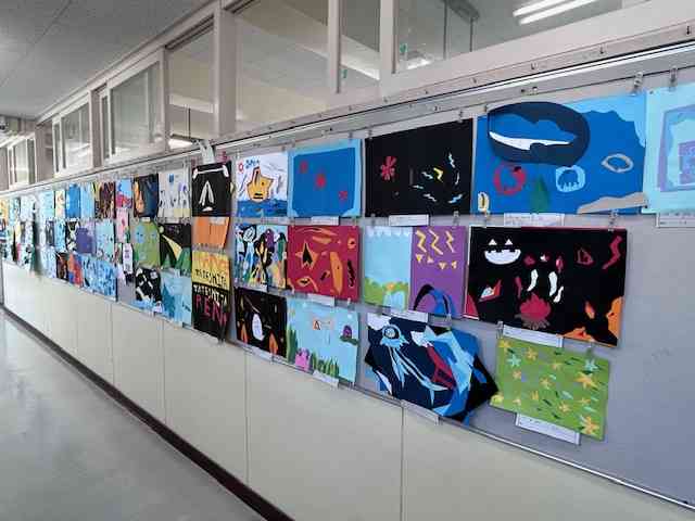 5/23(金)ロング昼休みと図工室前掲示板6年生作品【本文】