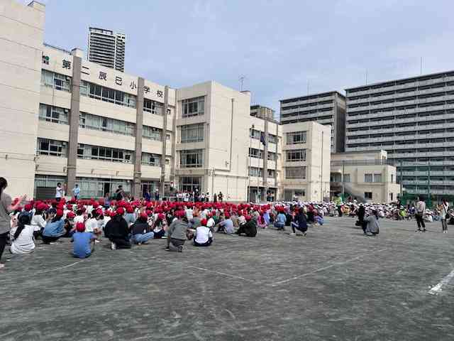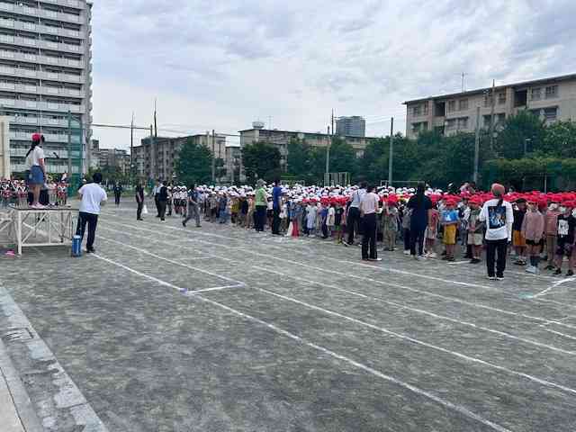 土曜日なのに・・・・。辰巳中の運動会を応援するために出勤しました。せっかくなので本校での運動会の話題がたくさんあるので紹介します。 一昨日5/22(木)に初めての運動会全校練習が行われました。私も話す場面があったのでこれまでの各学年の練習や高学年係活動などの準備、そして今から披露してくれる6年生鼓笛隊への労いなどを伝えました。最後に、ご近所に対して、運動会練習、校庭での練習が本格的になったこと、そのため、音楽や楽器の音、こどもたちのかけ声などで大変ご迷惑をおかけしていることお詫びを伝えました。 全体練習時の様子を紹介します。今回の内容は、6年生鼓笛の入場、聖火リレーのやり方やみなさんへの協力のお願いなど確認でした。 写真1枚目は6年生あいさつ。 2枚目・3枚目は、6年生鼓笛入場と全校児童の入場。 4枚目・最後5枚目は、聖火リレー入場。デフリンピック開催を記念したがんばれの手話と拍手の手話で観戦し応えるこどもたち。さすがの企画です。素晴らしい。 来週末の本番に向けて、学年、高学年係活動、6年生鼓笛などなど着々と準備が進んでいます どうぞ楽しみにしておいてください。 引き続きよい週末をお過ごしください。【添付ファイル】
