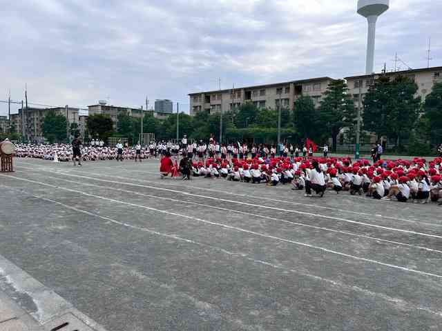 またまた運動会関連。運動会の話題が多くなります。 今回は今週月曜日5/26に行われた運動会全校練習の様子を紹介します。 今回の全校練習の内容は、応援合戦のやり方など確認、全校競技:大玉送りについてでした。 今週末の本番に向けて、学年、高学年係活動、全校競技など着々と準備が進んでおり、真に佳境に入っております。心配なのは天気のみという感じです。 写真1枚目。6年生あいさつ。 写真2枚目・3枚目。応援合戦!最初とは思えないくらい気持ちが一つになっていました。 4枚目、最後5枚目。大玉送り!盛り上がりました。特に真剣に取り組んだ2回戦目! どうぞ楽しみにしておいてください。 てるてる坊主のご協力をどうぞよろしくお願いします。【添付ファイル】