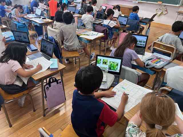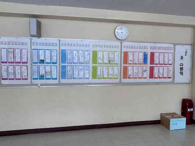 夏休み中で、しかも祝日;海の日ですが前期後半にもいろいろな活動等を行い、まだ紹介できていなかったものを中心に紹介します。 1枚目。1年生アサガオ。大切に育ててきました。雨の日も水やりをやっていました。愛おしいです。夏休み中ご家庭でお世話になります。まだお持ち帰りでないご家庭はどうぞよろしくお願いします。 2枚目。3年生。理科風力電力自動車。体育館の広いところで走らせていました。みんな楽しそうでした。 3枚目。2年生。夏野菜の観察。暑い時期でしたので、chromebookで撮影したものを教室に戻って涼しい中で観察していました。拡大したりして細部に至るまで観察にノートに描いていました。 4枚目。3年生。国語で学習した「まいごのかぎ」を場面絵に合わせて主人公の気持ちの動きを、班ごとに模造紙にまとめていました。叙述を基に気持ちを考えていることがよく分かりました。 最後5枚目。本校俳句掲示板。夏の俳句。1年生のものも揃いました。この調子で夏休みにでも一句ひねってみてください。期待しています。【添付ファイル】