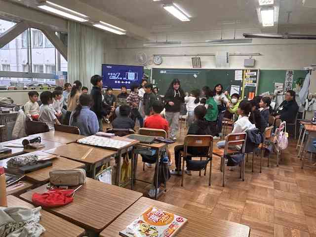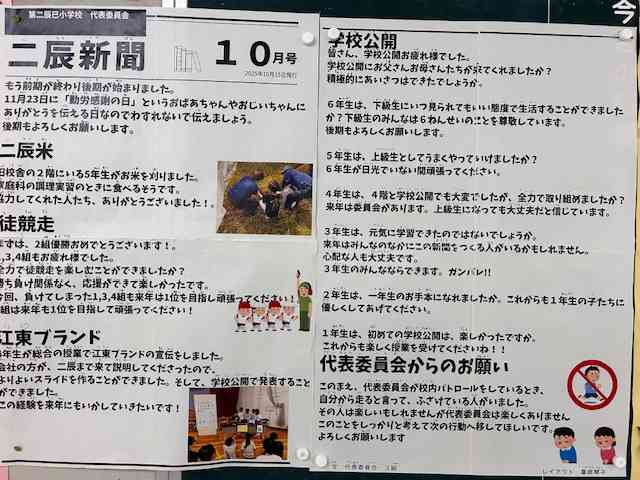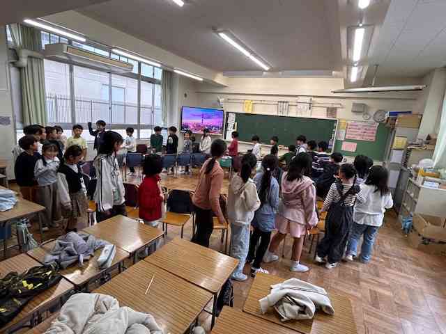 1枚目から4枚目。先週、22日(水)のロング昼休みの様子です。 あいにくの雨模様でした。今回は4年生の体育館の様子と雨の日バージョンの各クラスの様子を紹介します。体育館はクラス対抗ドッジボール大会、教室では、なんでもバスケット、イス取りゲーム、ICTを使ったクイズ大会、ボッチャなどで楽しんでいました。 最後5枚目は恒例となりました、代表委員会による学校新聞です。回を重ねるごとに、取り上げる記事や記事の内容のレベルが上がっています。学校便り顔負けのレイアウト&内容です。素晴らしい!いつもありがとうございます。 今朝はこれから延期となっていた全校Meet朝会です。【添付ファイル】