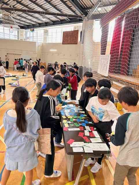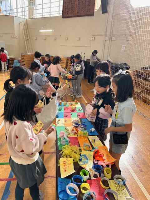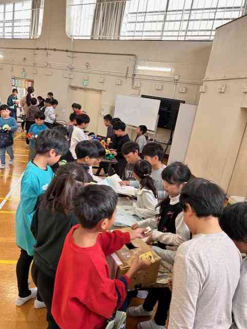 続けて、3年生が毎年行っている二辰商店街の様子のその2を紹介します。 この学習は、これまでの学習内容や学習方法がぎゅっと詰まった総合的な学習の時間として行われています。社会科で学習した、江東ブランド企業ムトウユニパックさんでの作る工夫や思い、そして、地域のワイズマートの見学や区内巡りで訪れた砂町銀座商店街での売る側の工夫やお客さんとのやりとり。国語で学習した話し方・聞き方の工夫や話し合いの工夫。算数での上手な計算方法。理科でのゴムや風の学習を生かしたおもちゃ景品づくり、などなどです。 写真は、12月10日(水)の1・2校時に行われた「二辰商店街」各グループ後半の買い物の様子です。前半を振り返った後、いよいよ二辰商店街後半の始まりです。 後半グループも楽しそうに買い物をしました。 前半・後半、どのお店もなかなか工夫した商品が並んでいました。 また、客足が途絶えると呼び込みを行ったりチラシを配りに回ったりとさすがの販促計画行動もさすがでした。 最後の写真は、3年生の教室前に早くから掲示されていた、商店街掲示:各お店の紹介です。意気込みが伝わってきます。 冬休みまで約2週間、今朝も寒いですが、今週は幾分和らぐとか。そのぶん寒暖差が激しそうです。体調管理に気を付けて今週も元気にがんばりましょう!【添付ファイル】