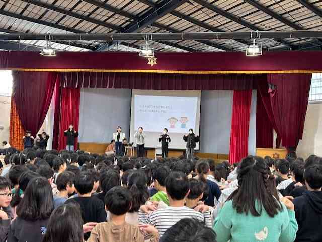 今回は先々週2/19(火)朝の時間帯に実施した音楽朝会での様子です。 明日の6年生を送る会のときに全校児童で6年生に向け歌う「ありがとうの花」を全校で合わせました。 集会委員会の皆さんも手伝ってくれて、パネルを出したりして歌やハミングでルーなどを口ずさむのを手伝ってくれました。きれいなメロディーが響き渡りました。 明日はさらに、気持ちを乗せて歌って、6年生を気持ちよく送り出したいです。そのときの様子はまた後日紹介します。 最後5枚目は、2/12~14(土)までご協力いただいたSDGs委員会によるユニセフ募金活動、ご協力ありがとうございました。詳しくはSDGs委員会の発表を待ちますが、とりあえず辰巳郵便局に全額お渡しして振り込んでいただきました。そのときのSDGs委員会のメンバーとお忙しいところ出てきていただいた局長さんです。どうもありがとうございました。 3月になりました。残り日数もカウントダウンです。今週も元気に頑張りましょう。【添付ファイル】