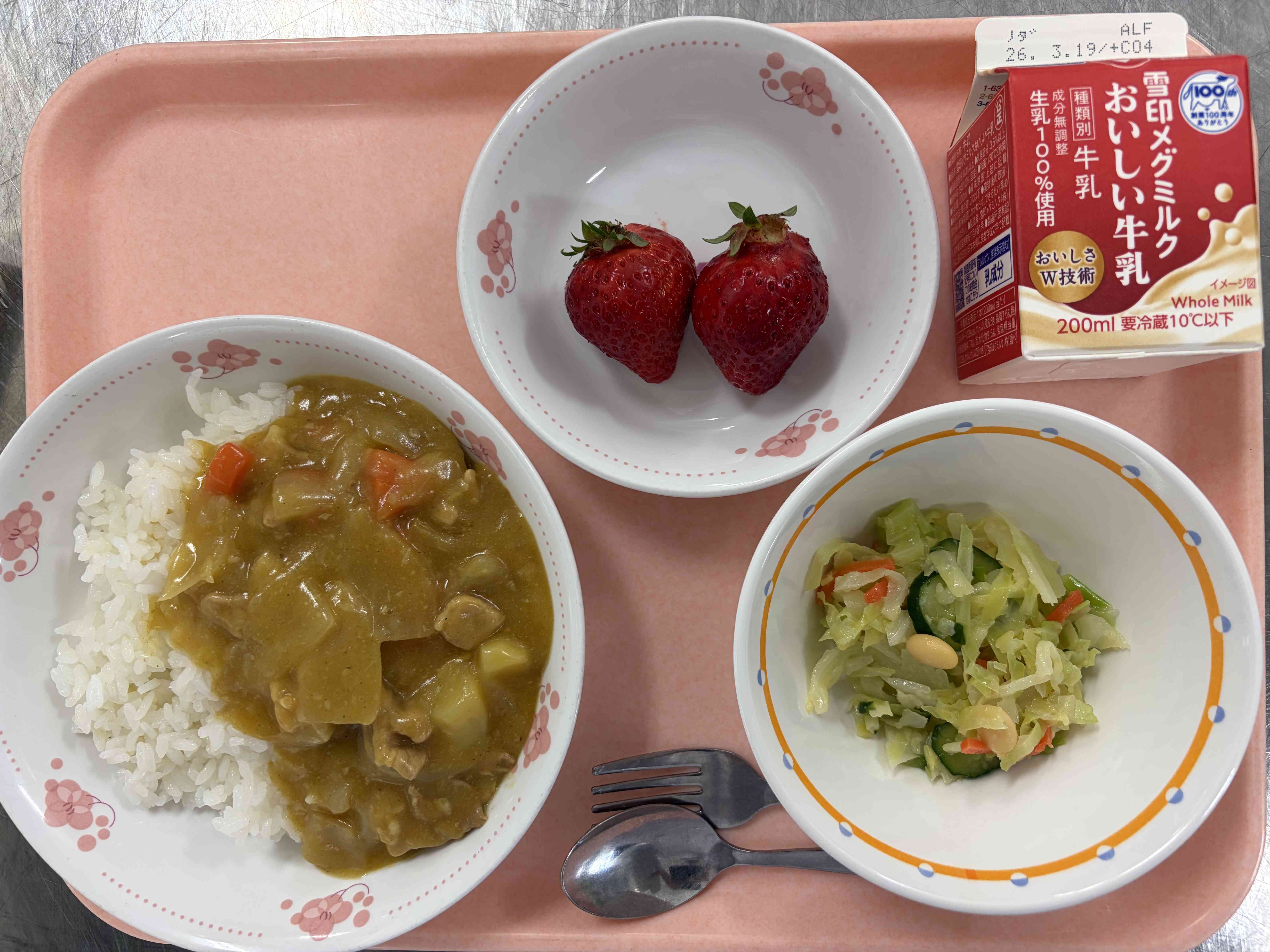 〇牛乳 〇カレーライス 〇大豆いりゆで野菜 〇いちご