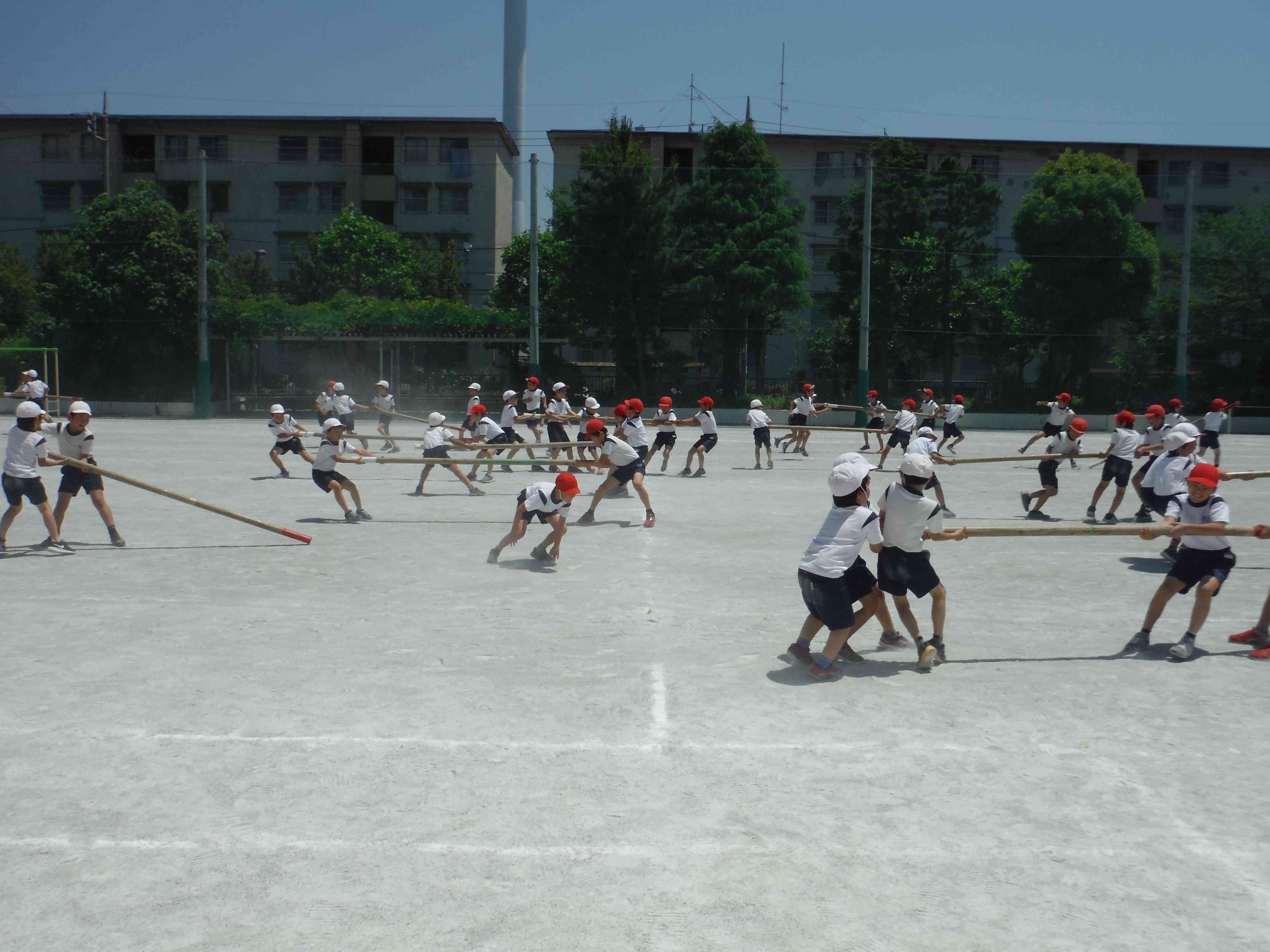 3年生は、棒引きと三川よさこいの練習をしています。 5月22日に、はじめて棒引きの練習をしました。