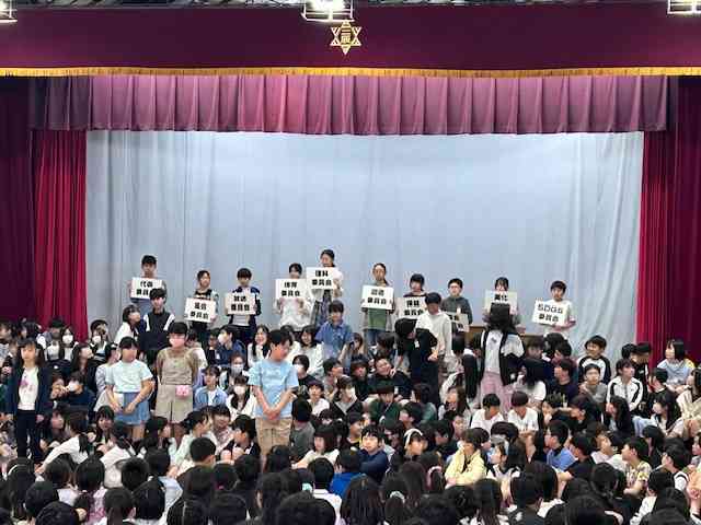 学年集会の内容は、通常の委員会とは別に、同じくこどもまんなか、自分たちの手でという自己有用感、そして自治の力を伸ばすために、6年生が中心となって行っている○○実行委員会の発表。