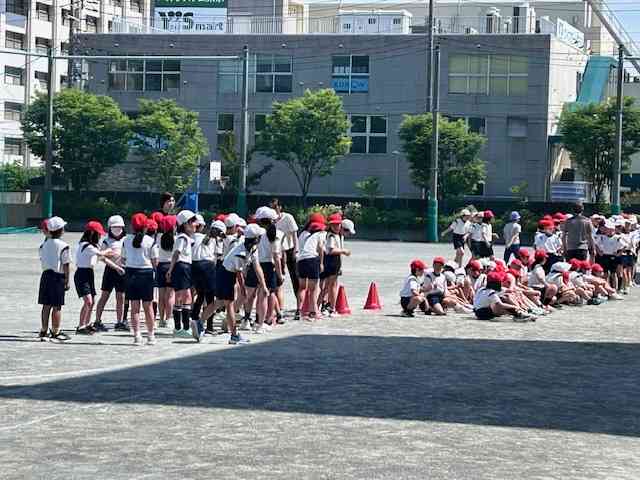 いつものように、偶数学年・奇数学年交互に実施しました。偶数奇数学年の中でさらにクラスで紅白で跳び合います。跳ばない列の子は跳んでいる子の回数を数えてあげながら励ましたりアドバイスしたりしています。そんなことが当たり前に出来るこどもたちです。列の前では、6年生の体育委員さんがお手本を見せて上げています。新しい技への挑戦、自己記録更新となったでしょうか。